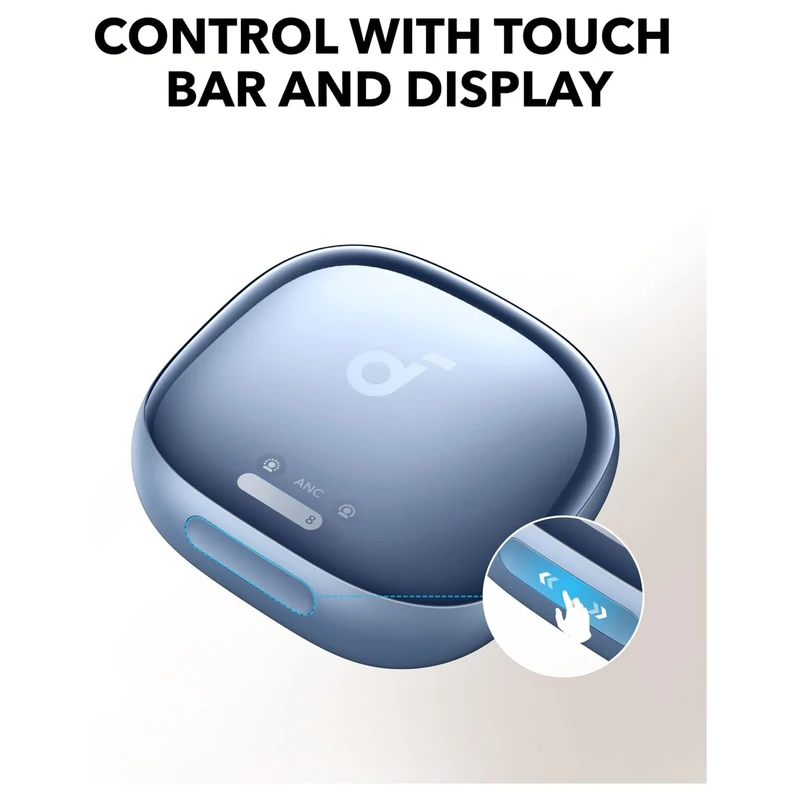 Liberty 4 Pro از نظر ظاهری، ترکیبی از سادگی و نوآوری است. هر هندزفری وزن ۵.۵ گرم دارد و با ساقههای فلزی مایعمانند (liquid metal finish) طراحی شده که ظاهری لوکس و مدرن به آن میبخشد. کیس شارژ با ابعاد ۶۵×۶۲×۳۰ میلیمتر و وزن ۵۱ گرم، از پلاستیک بازیافتی (۲۸% PCR) ساخته شده و درب آن با مکانیزم کشویی باز میشود. نقطه قوت اصلی کیس، صفحه نمایش کوچک OLED و نوار لمسی (touch bar) است که امکان کنترل مستقیم (مانند تغییر آهنگ یا ANC) بدون نیاز به گوشی را فراهم میکند. این ویژگی، Liberty 4 Pro را از رقبایی مانند Sony WF-1000XM5 متمایز میکند، هرچند کیس کمی لغزنده و جذبکننده اثر انگشت است.