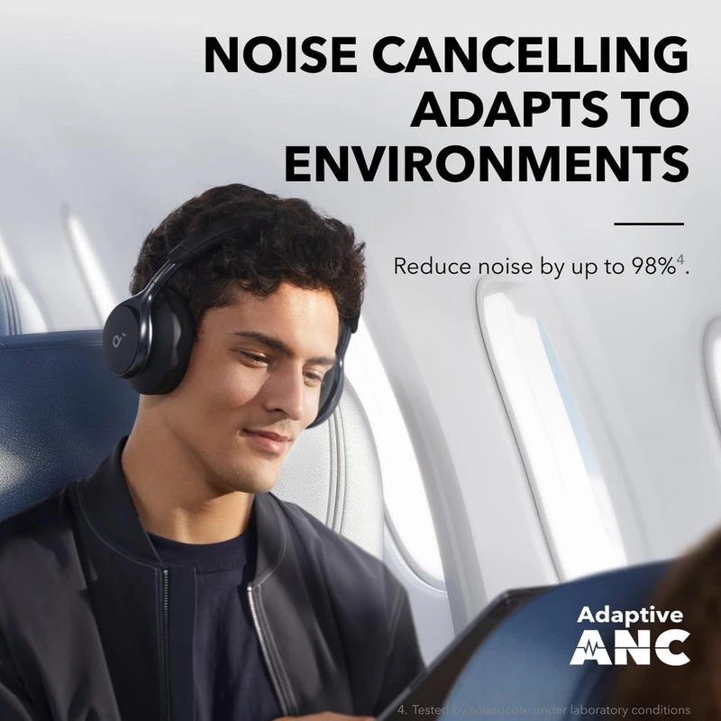 ANC تطبیقی تا 98% (2x قویتر از Q30، با 3 میکروفون و الگوریتم AI) یکی از نقاط قوت اصلی است و صداهای خارجی مانند ترافیک یا صدای فن را به خوبی حذف میکند – عملکردی فراتر از انتظار در رده میانرده (حذف واقعی حدود 30-35 dB). حالتهای adaptive، transport و indoor وجود دارد، که محیط را اسکن و تنظیم میکند. wear detection سنسور، پخش را هنگام برداشتن هدفون متوقف میکند.