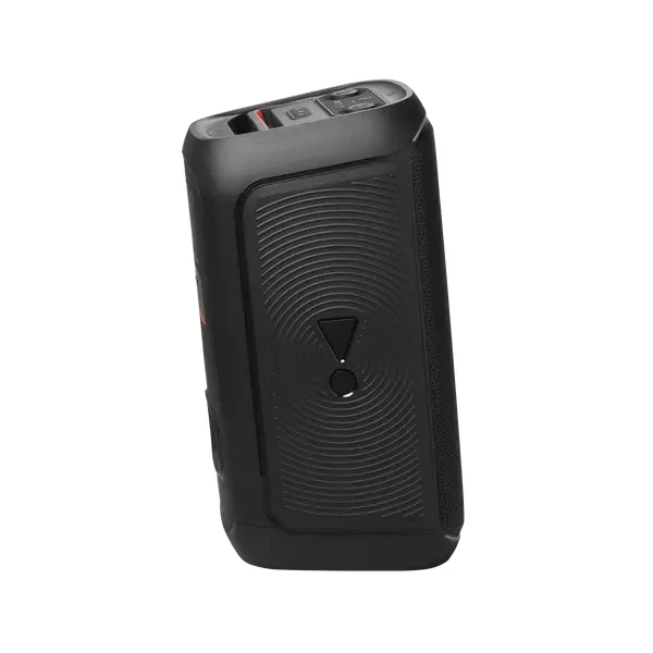 این اسپیکر با ابعادی حدود ۲۸.۸ سانتیمتر عرض، ۵۷ سانتیمتر ارتفاع و ۲۹.۷ سانتیمتر عمق، ساختاری جمعوجورتر از مدلهای بزرگتر دارد و وزن آن حدود ۱۱ کیلوگرم است. بدنه از پلاستیک مقاوم با بخشی از مواد بازیافتی ساخته شده، با گریل فلزی برای حفاظت از درایورها و پایههای لاستیکی برای ثبات در حالت عمودی. دسته تاشو ارگونومیک و توزیع وزن متعادل، حمل آن را آسانتر میکند، اما بدون چرخ، برای مسافتهای طولانی کمی چالشبرانگیز است. درجه حفاظت IPX4 آن را در برابر پاشش آب (مانند باران سبک) مقاوم میکند، اما کاملاً ضدآب نیست و در حالت افقی حساستر است. روی بدنه، کنترلهای فیزیکی برای حجم، باس بوست، افکتهای نوری و ورودیهای پشتی با درپوش وجود دارد. طراحی کلی محکم و شبیه به مدلهای دیگر سری PartyBox است، با رنگبندی مشکی و accents نارنجی.