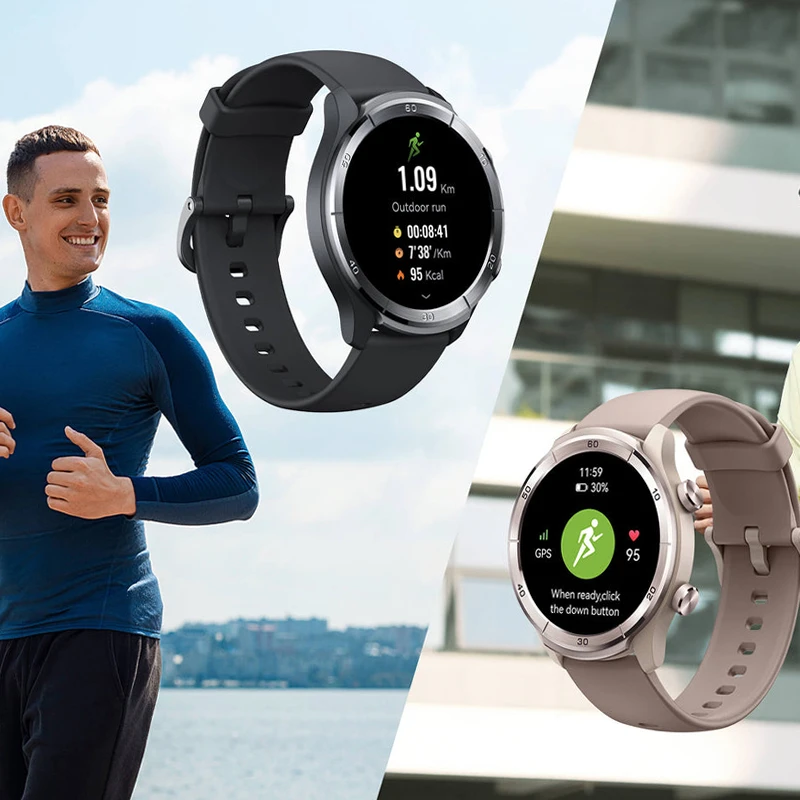 بند ساعت از نوع 22 میلیمتری استاندارد و قابل تعویض است و گزینههای سیلیکونی (در رنگهای mocha، dark gray یا gold) همراه آن عرضه میشود. بند سیلیکونی ضدعرق و انعطافپذیر است و به راحتی تنظیم میشود. دکمههای کناری (دو کلید فیزیکی) برای ناوبری و فعالسازی سریع حالتهای ورزشی تعبیه شدهاند. کلیت طراحی، مد روز و اسپرت است – شبیه به مدلهای آمازفیت Bip – و برای مچهای کوچک تا متوسط مناسبتر است. حاشیههای نمایشگر باریک و پوشش ضداثرانگشت، ظاهری مدرن به آن میدهد، هرچند در مقایسه با مدلهای premium، مواد بدنه کمتر لوکس به نظر میرسد.