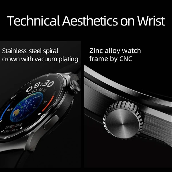 QCY GT2 با بدنهای از آلیاژ روی (Zinc Alloy) و پوسته پشتی سرامیکی، طراحی دایرهای شیک و مدرنی دارد که وزن آن را به حدود ۴۸ گرم (با بند) محدود میکند و برای استفاده طولانیمدت راحت است. بند سیلیکونی با سگک استیل ضدزنگ و عرض ۲۲ میلیمتر، قابل تعویض است و امکان شخصیسازی را فراهم میکند. ابعاد ۴۶ × ۴۶ × ۱۱.۷ میلیمتر، تعادل خوبی بین اندازه و ارگونومی ایجاد کرده است.