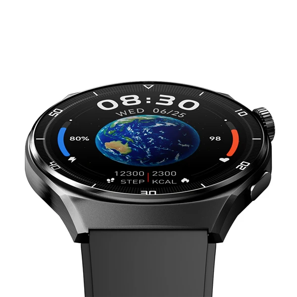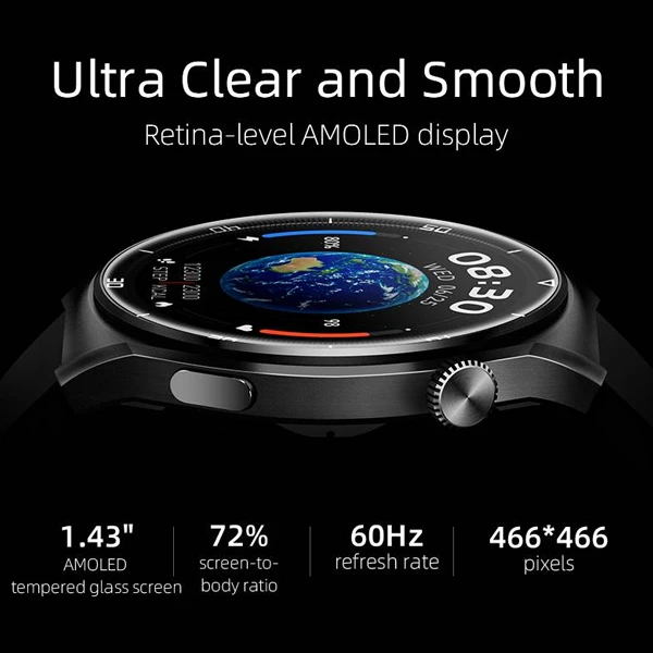 صفحهنمایش ۱.۴۳ اینچی AMOLED با رزولوشن ۴۶۶ × ۴۶۶ پیکسل و نرخ تازهسازی ۶۰ هرتز، یکی از نقاط قوت اصلی است. این پنل رنگهای زنده، کنتراست عمیق و روشنایی مناسب (تا ۶۰۰ نیت) ارائه میدهد و از حالت Always-On Display (AOD) پشتیبانی میکند. شیشه تمپرشده ۲.۵D مقاوم در برابر خطوخش، ظاهری لوکس به ساعت میبخشد. استاندارد IPX7 (مقاومت در برابر غوطهوری تا ۱ متر به مدت ۳۰ دقیقه) و ویژگیهای dustproof و shockproof، آن را برای فعالیتهای روزانه، باران یا شنا در آب شیرین ایمن میکند، هرچند برای غواصی عمیق توصیه نمیشود.
