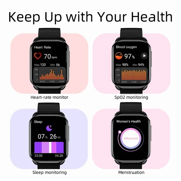 این ساعت در پایش سلامت و فعالیتهای ورزشی عملکرد قابل قبولی ارائه میدهد. سنسورهای داخلی شامل شتابسنج، ژیروسکوپ، سنسور ضربان قلب نوری و SpO2 برای اندازهگیری سطح اکسیژن خون هستند. دقت ضربان قلب در تستهای عملی حدود ۹۰-۹۵% با دستگاههای مرجع مانند ضربانسنجهای سینهای است، که برای یک ساعت اقتصادی مناسب است. پایش خواب شامل مراحل سبک، عمیق و REM است و دادههای مفیدی برای بهبود کیفیت خواب ارائه میدهد. همچنین، قابلیت ردیابی دورههای قاعدگی برای کاربران زنانه اضافه شده، که کاربردهای شخصیسازیشده را افزایش میدهد.