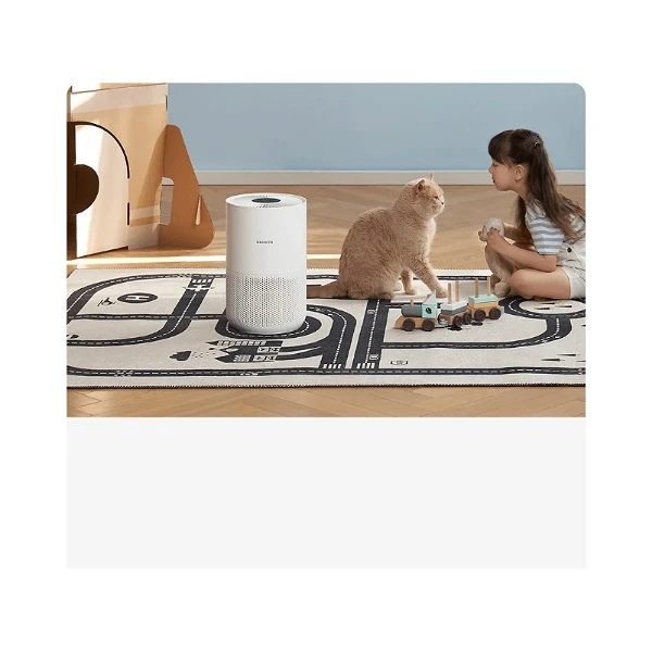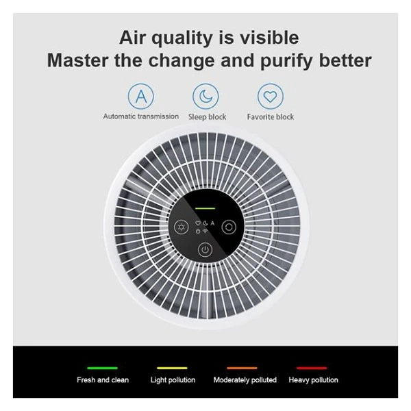 این دستگاه با ابعاد تقریبی ۲۲ × ۲۲ × ۳۵.۵ سانتیمتر (قطر ۲۲ سانتیمتر و ارتفاع ۳۵.۵ سانتیمتر) و وزن تنها حدود ۲.۲ کیلوگرم، طراحی استوانهای بسیار جمعوجور دارد که به راحتی روی میز، کنار تخت یا در گوشه اتاق قرار میگیرد. بدنه از پلاستیک ABS مقاوم سفیدرنگ ساخته شده و ورودی هوا ۳۶۰ درجه اطراف آن قرار دارد تا جریان هوا یکنواخت باشد. خروجی هوا در بالا است. نمایشگر LED ساده روی بدنه، کیفیت هوا را با نوار رنگی چهارگانه (سبز تا قرمز) و عدد PM2.5 نشان میدهد. کنترل لمسی برای تغییر حالتها و دکمه خاموش/روشن نور وجود دارد. در حالت شب، نور نمایشگر کاملاً خاموش میشود تا مزاحم خواب نشود. طراحی دوکاره (رومیزی و ایستاده) و سبک آن حمل و جابهجایی را آسان میکند.
